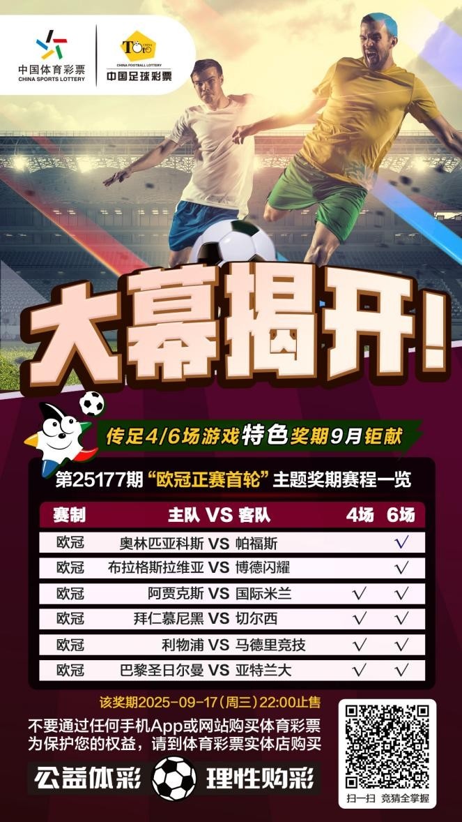 传足4/6场游戏特色奖期第25177期竞猜对象本赛季欧冠正赛(联赛阶段)首轮赛事。作为世界足坛最受关注的赛事之一,进入联赛阶段标志着欧冠赛...